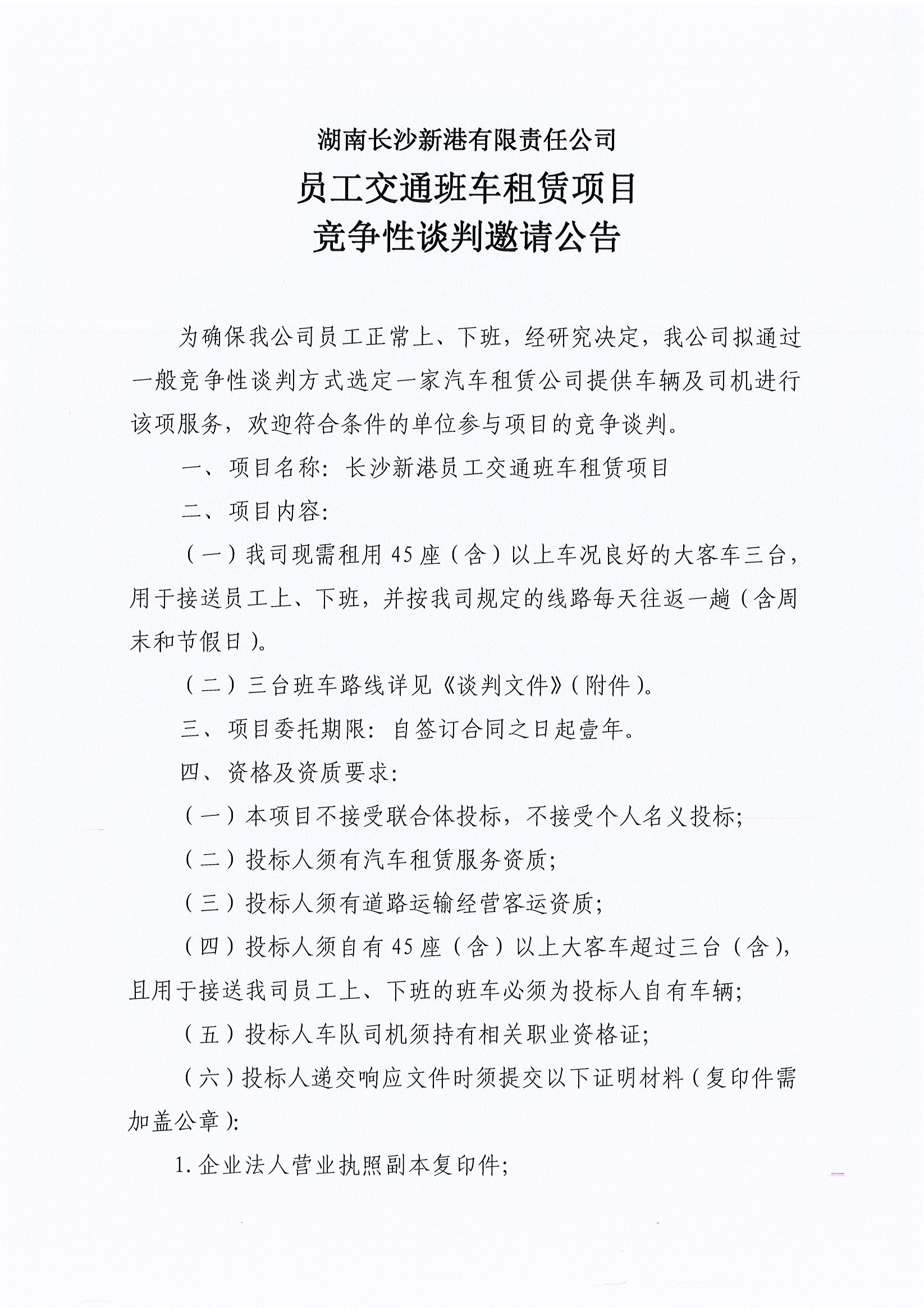 湖南長(cháng)沙新港有限責任公司 員工交通班車(chē)租賃項目競爭性談判邀請公告