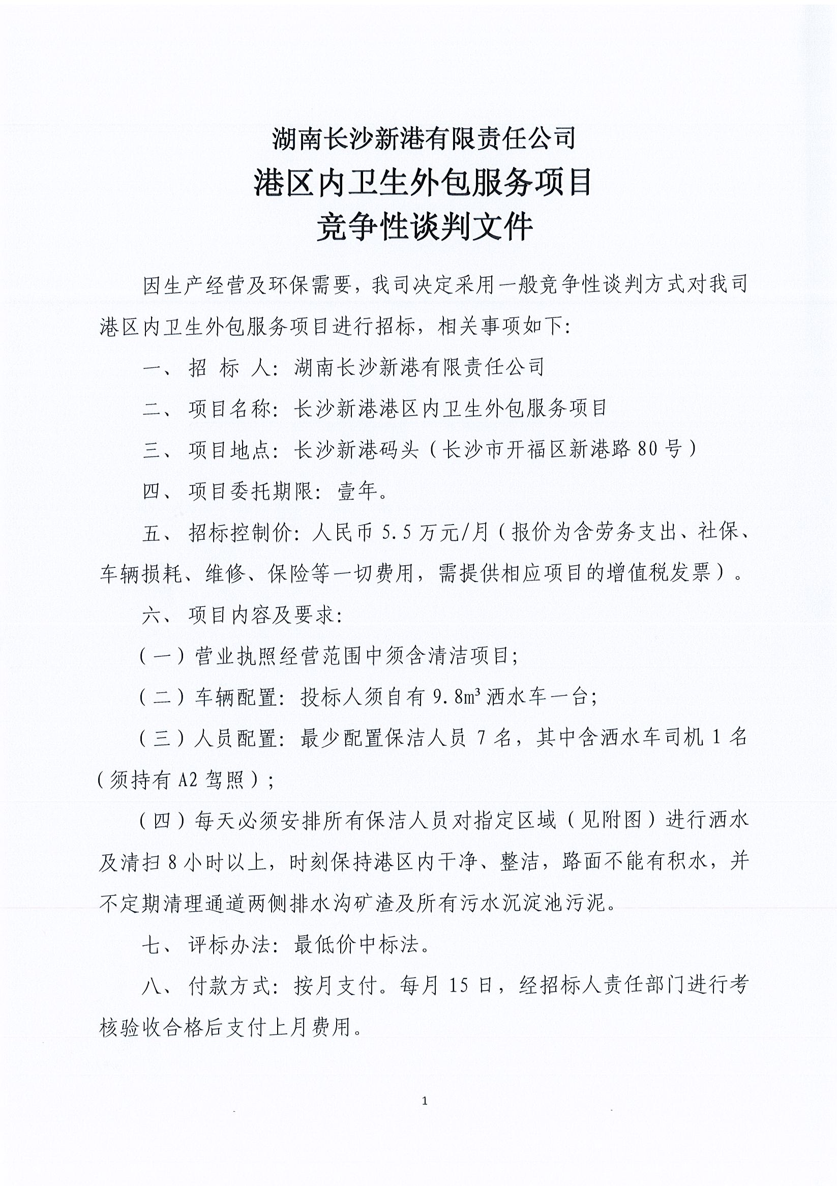 湖南長(cháng)沙新港有限責任公司 港區內衛生外包服務(wù)競爭性談判邀請公告