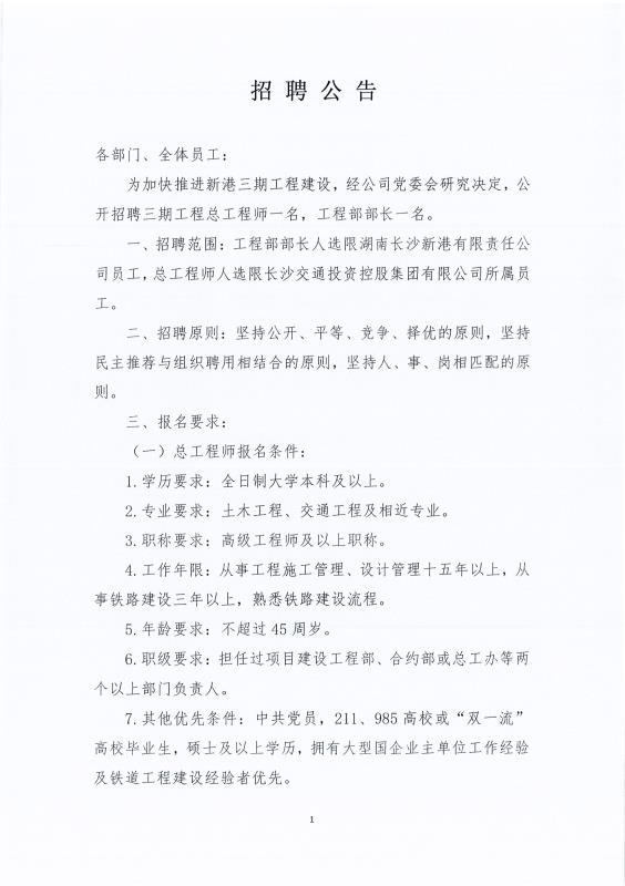 湖南長(cháng)沙新港有限責任公司招聘公告