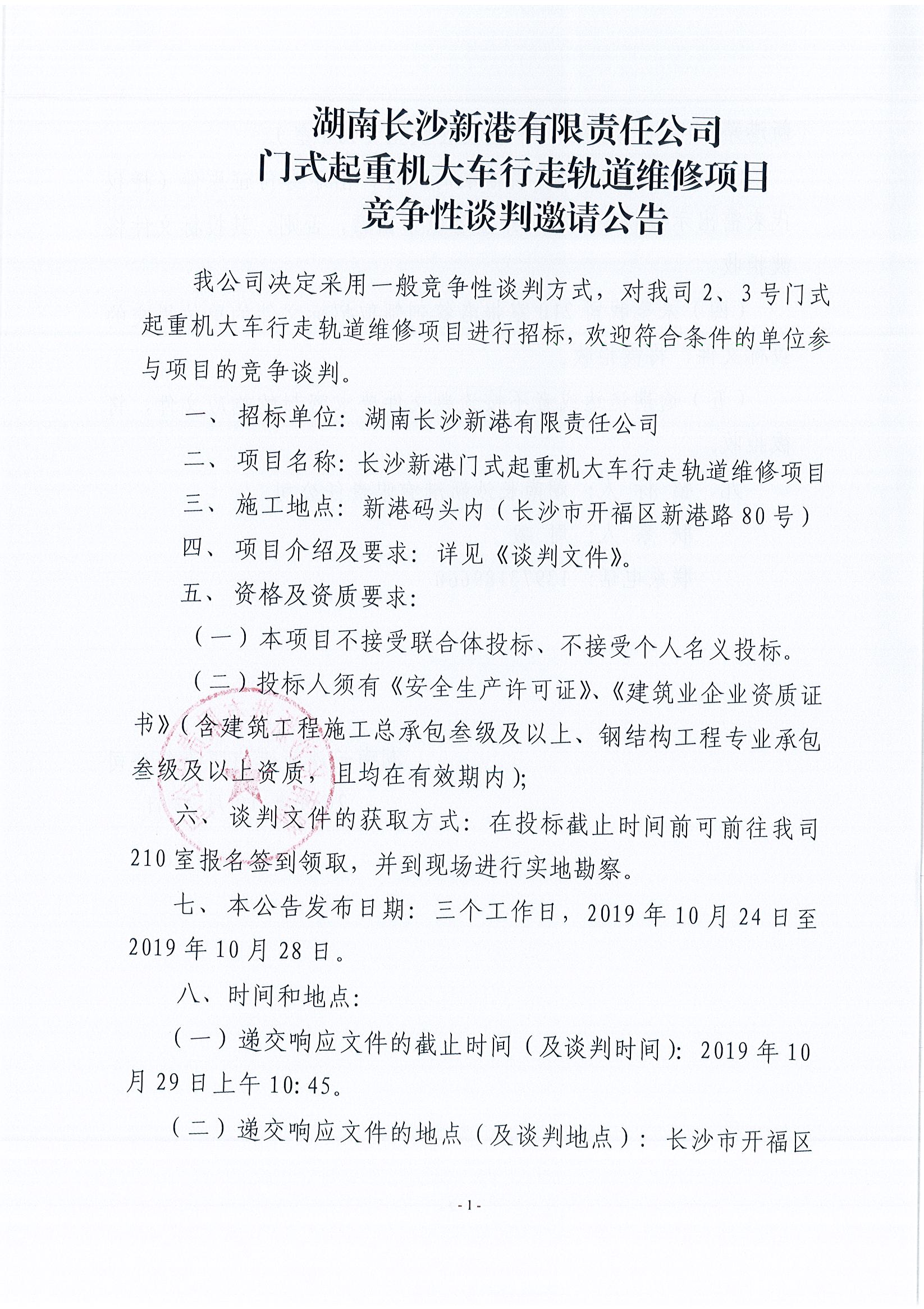 湖南長(cháng)沙新港有限責任公司門(mén)式起重機大車(chē)行走軌道維修項目競爭性談判邀請公告