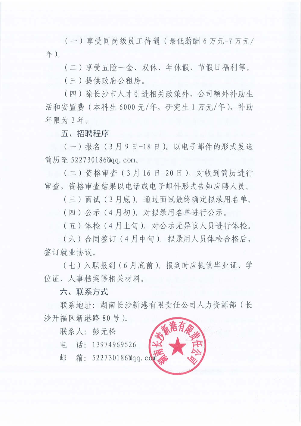 湖南長(cháng)沙新港有限責任公司招聘公告