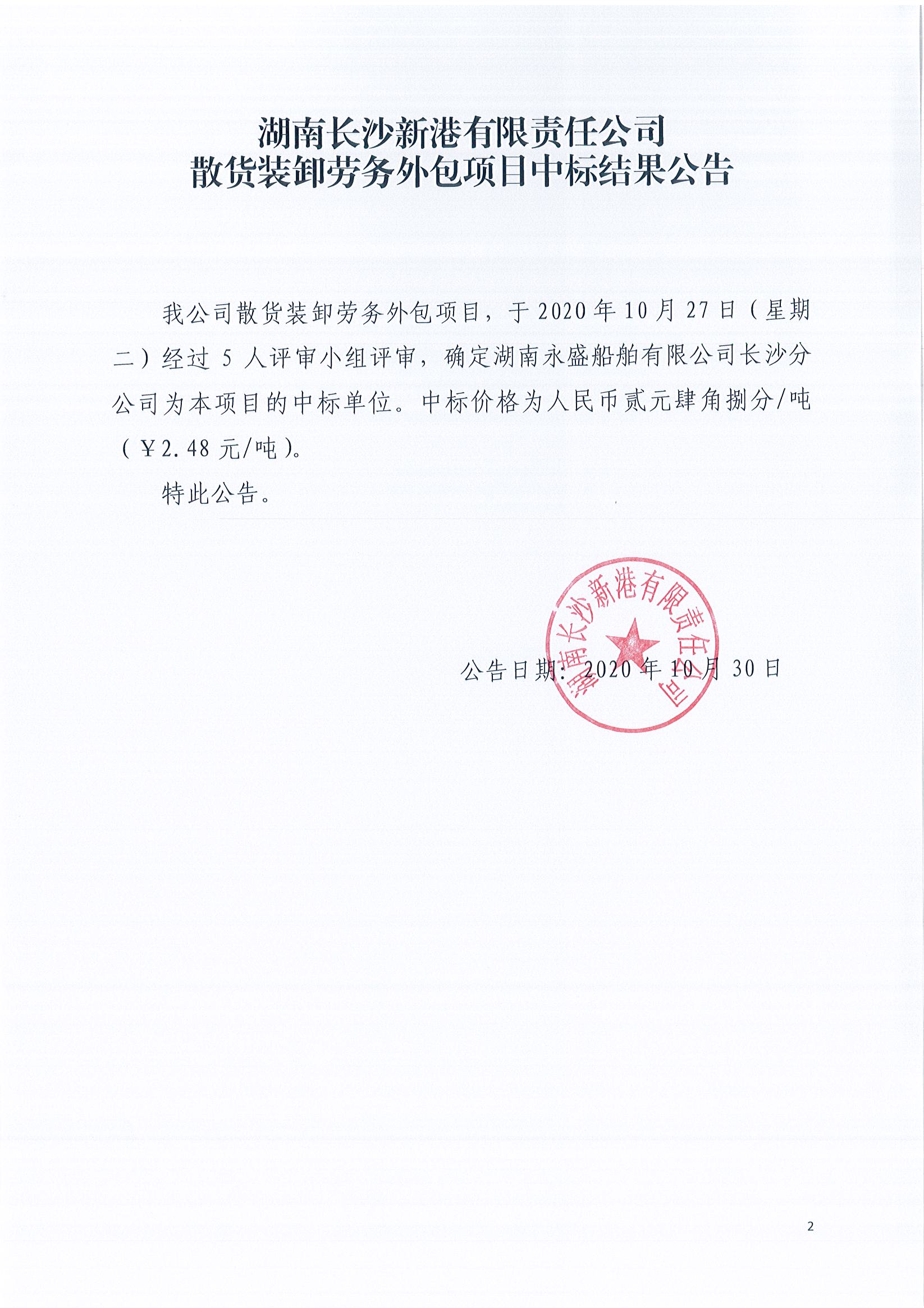 散貨裝卸勞務(wù)外包項目中標結果公告
