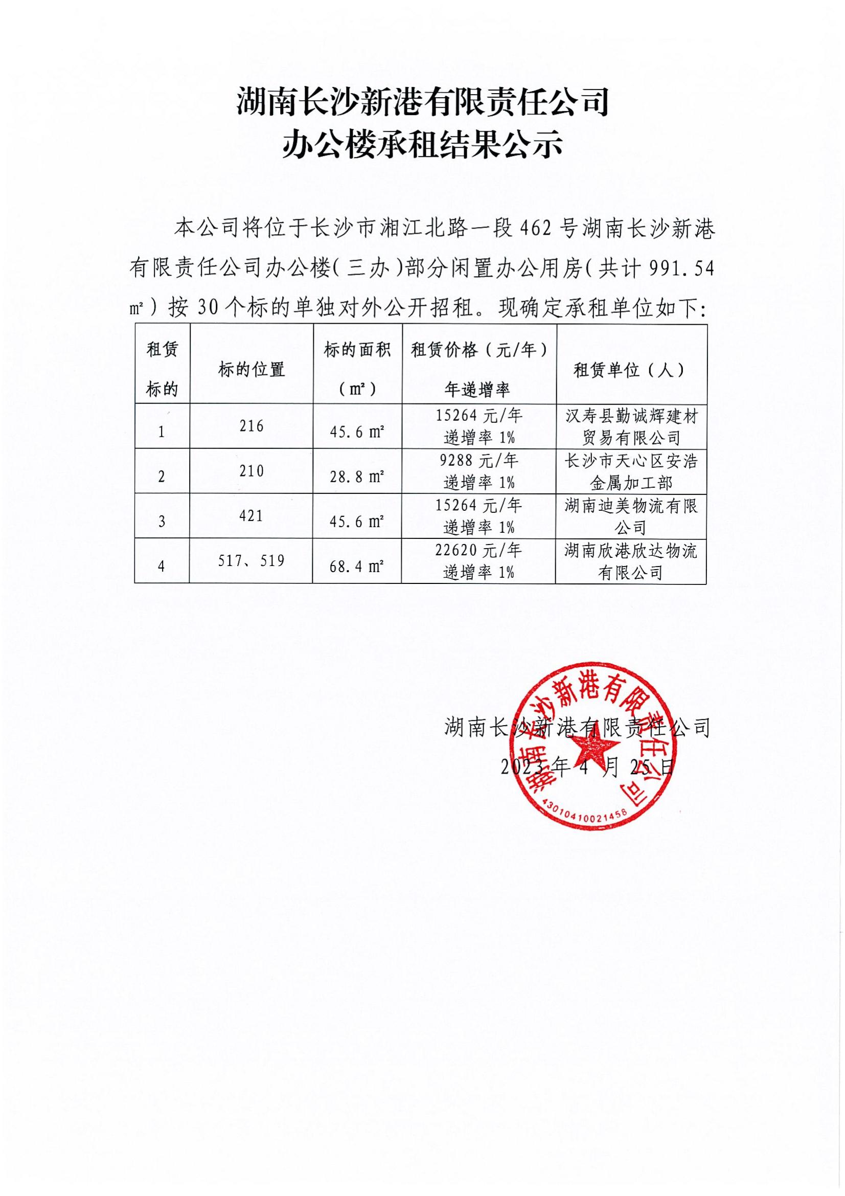 辦公樓承租結果公示