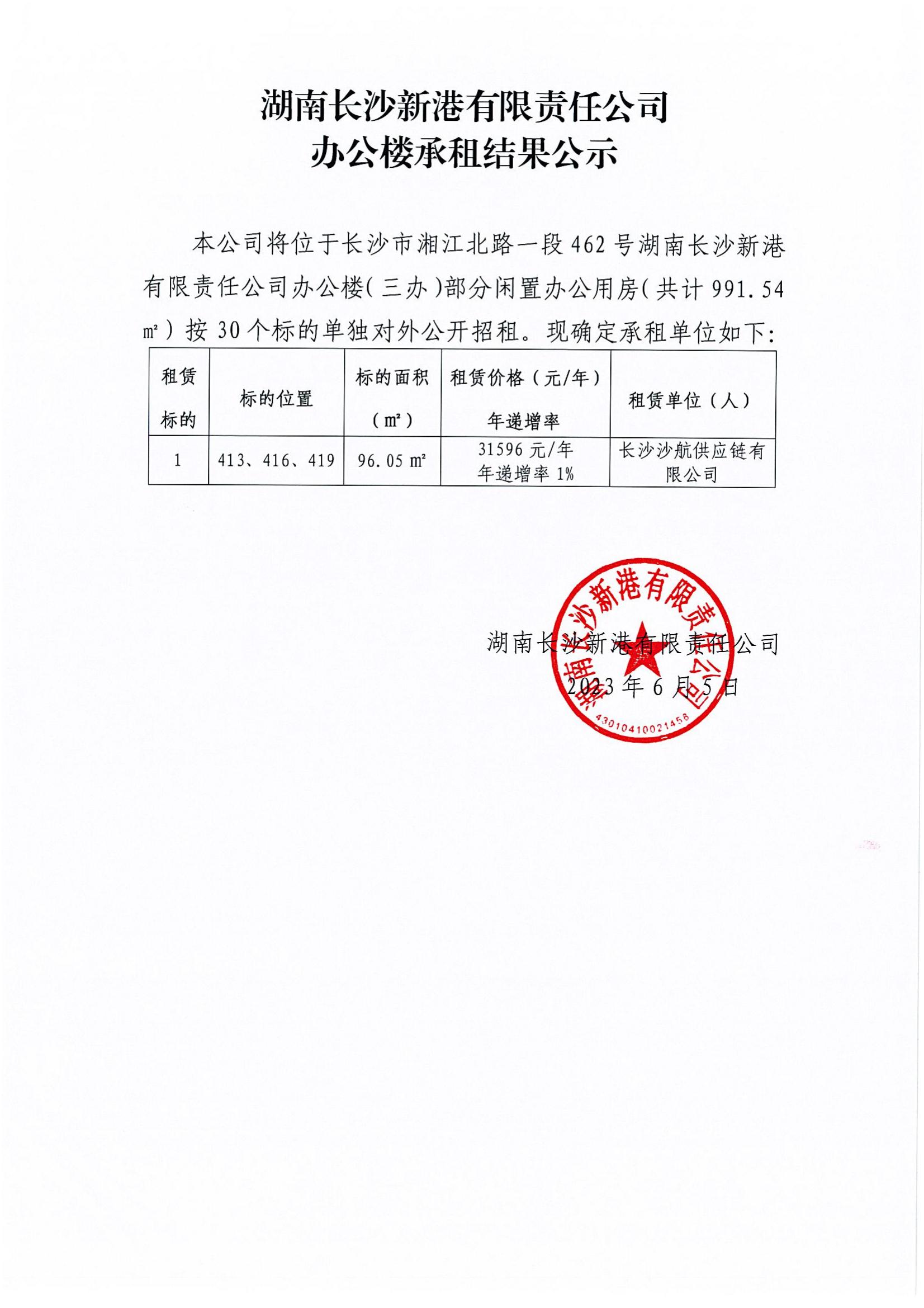 新港公司辦公樓承租結果公示