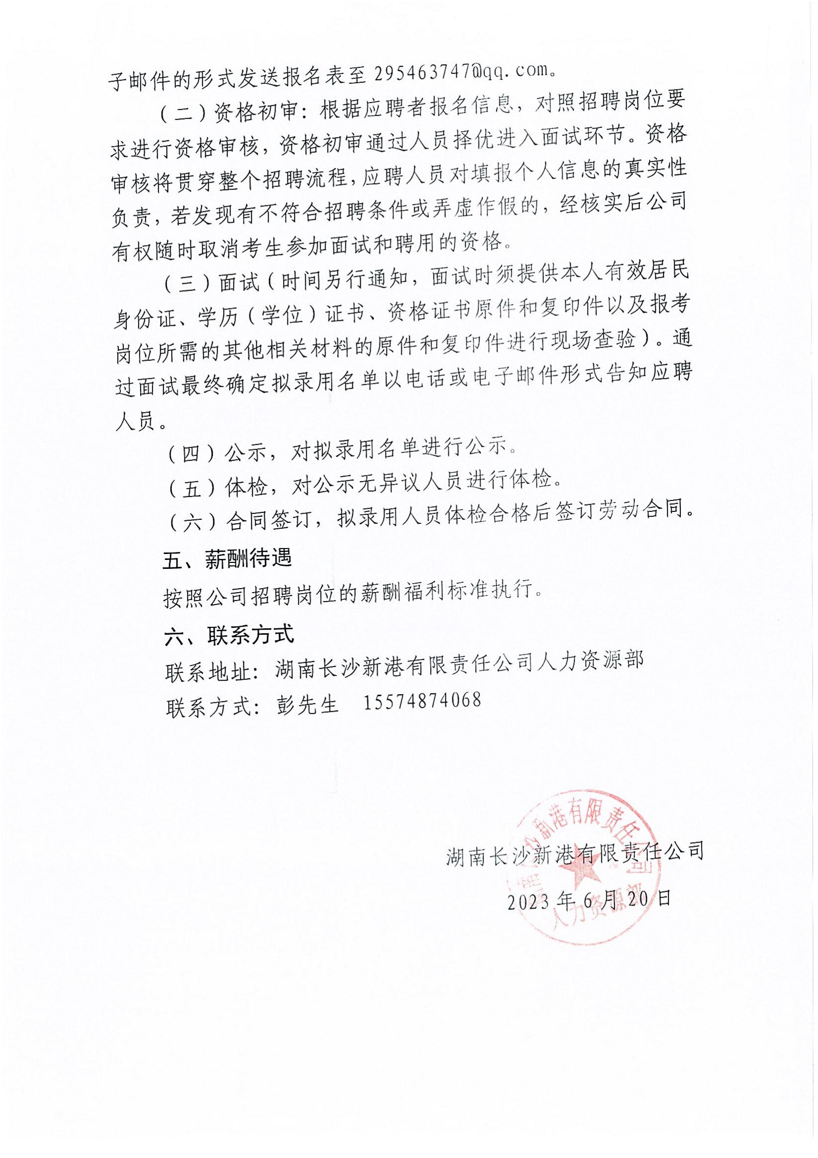 湖南長(cháng)沙新港有限責任公司招聘公告