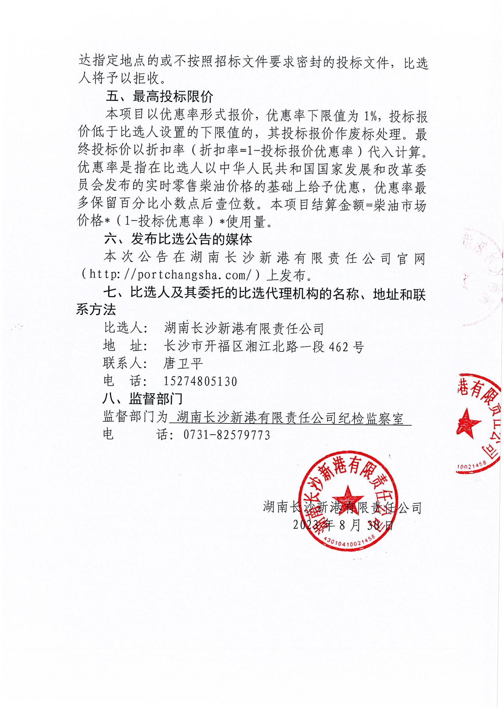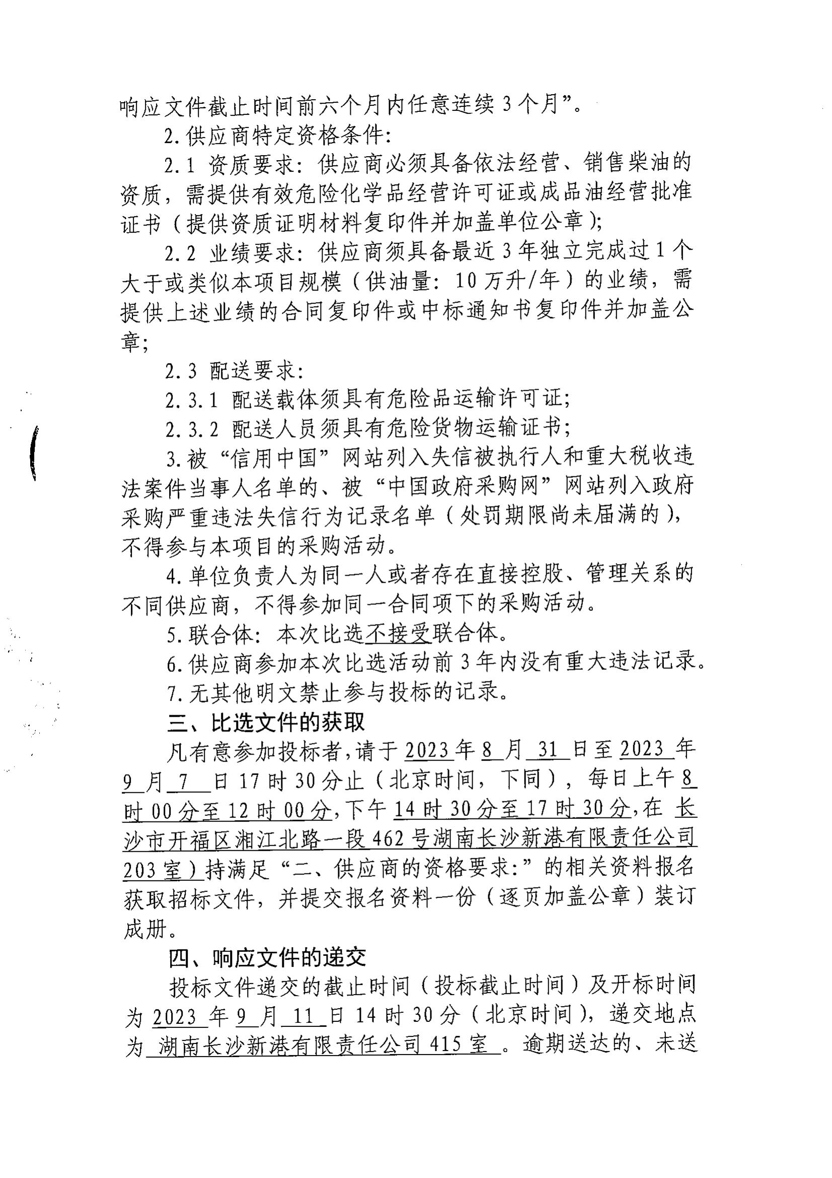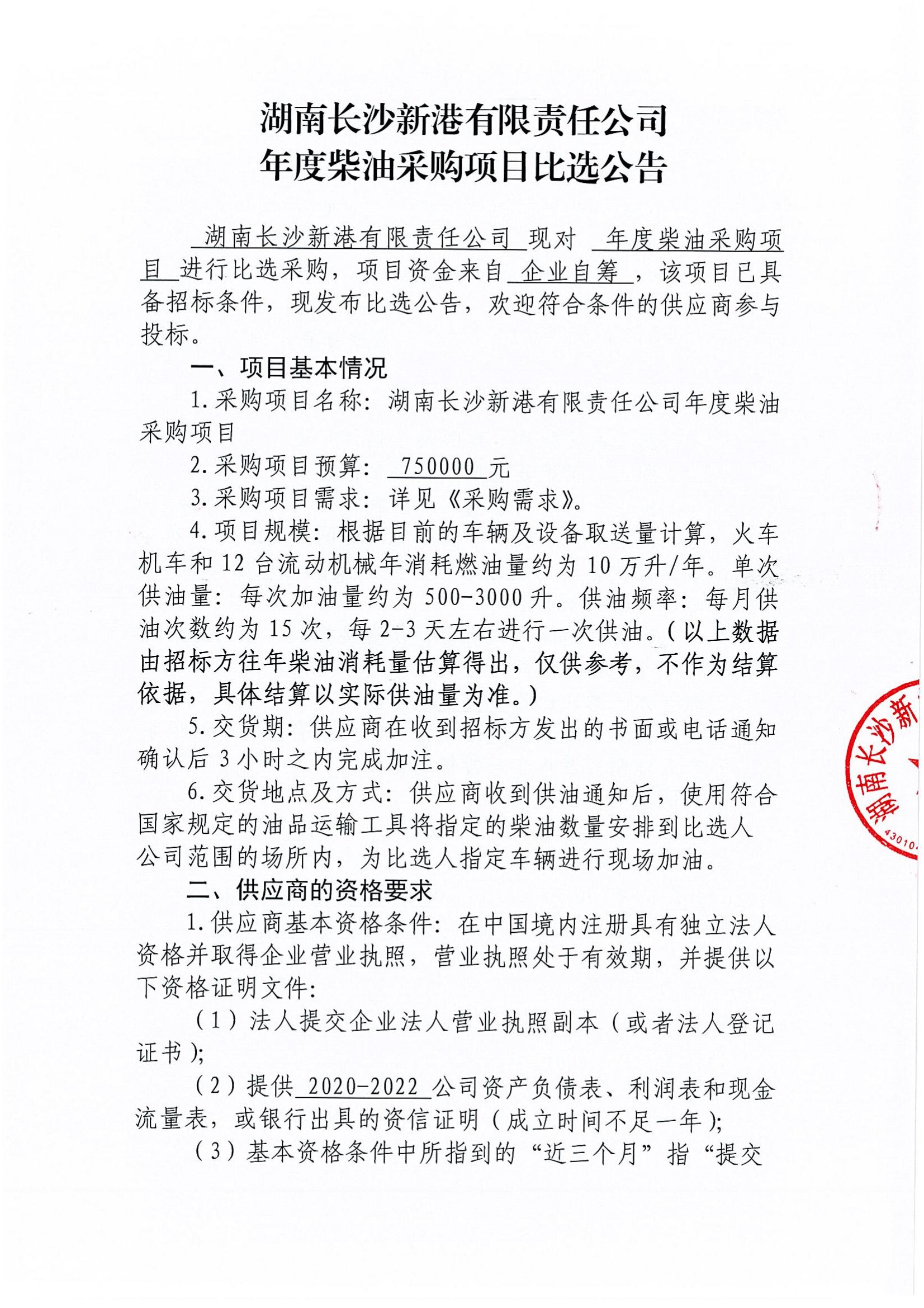 湖南長(cháng)沙新港有限責任公司年度柴油采購項目比選公告