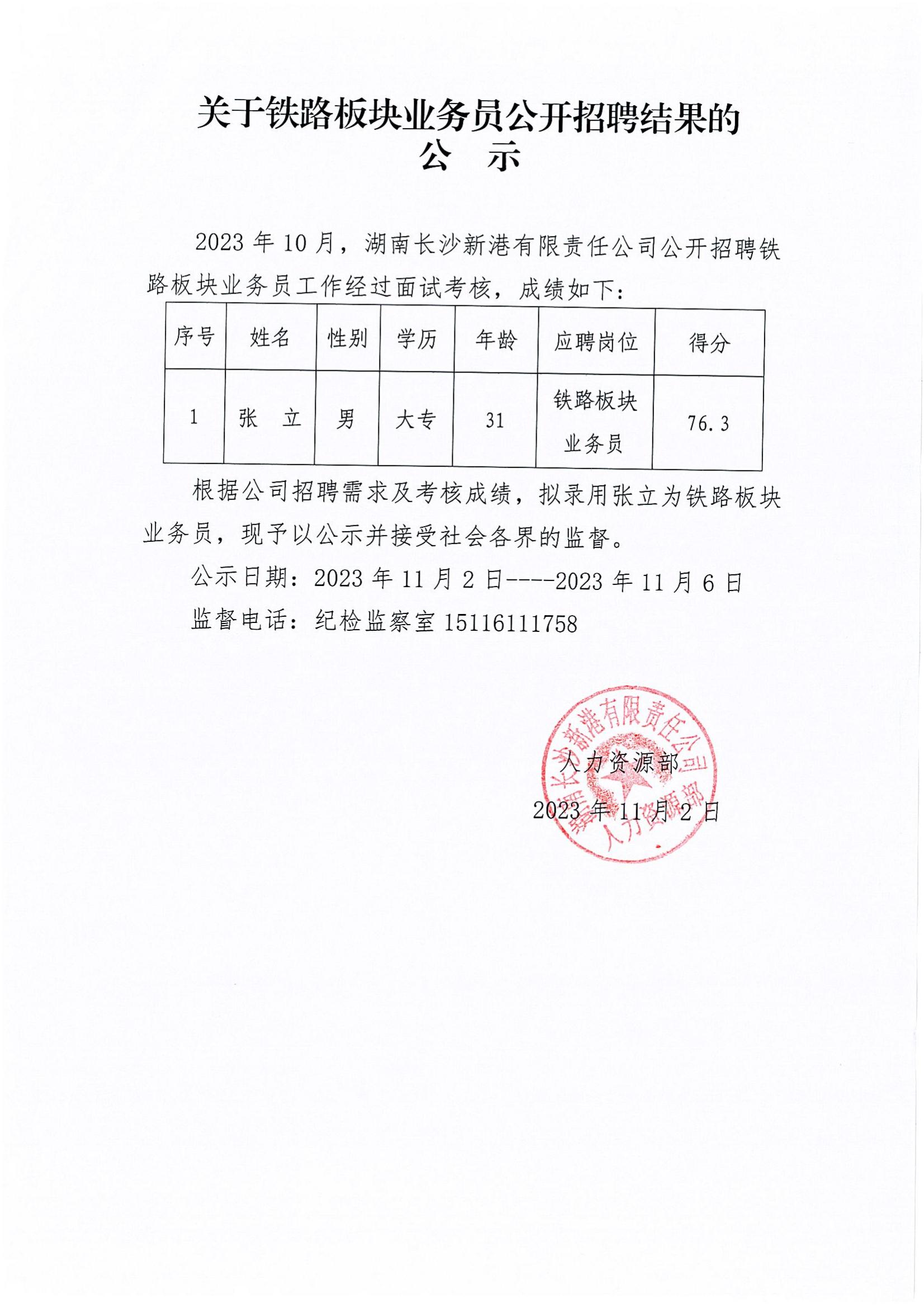關(guān)于鐵路板塊業(yè)務(wù)員公開(kāi)招聘結果的公示