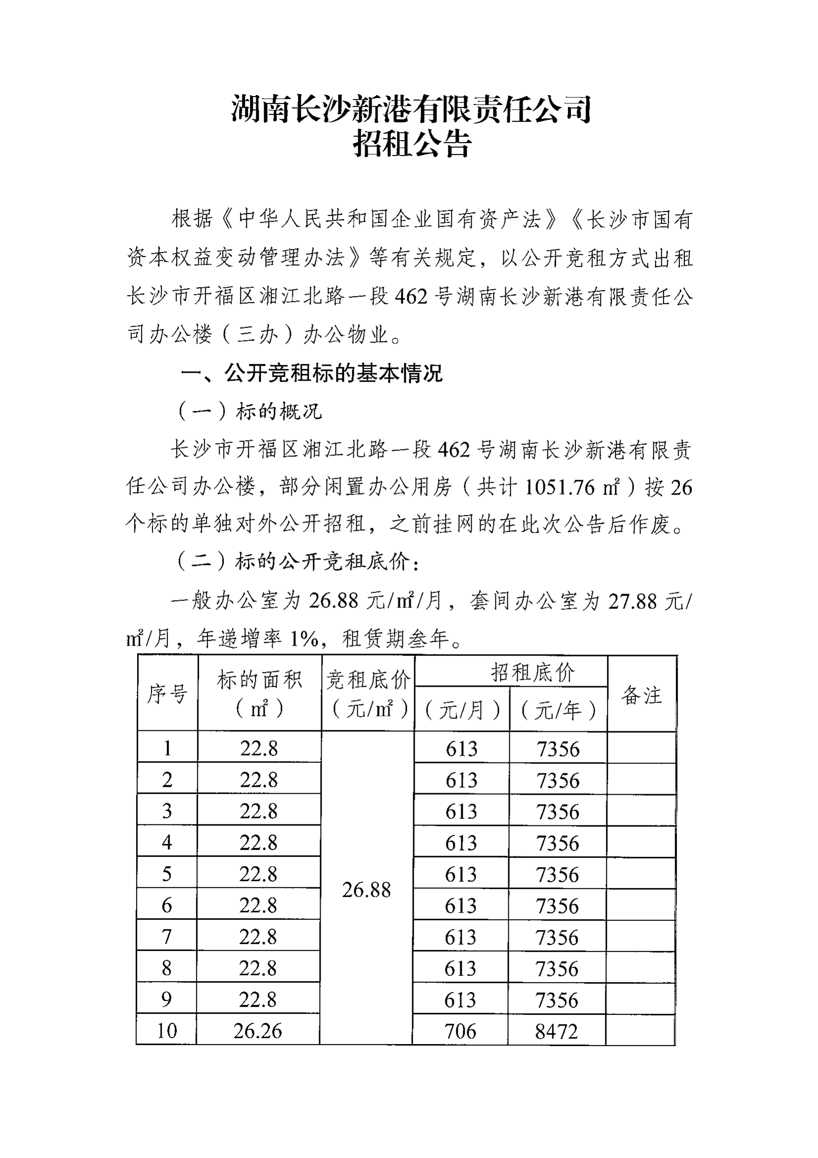 湖南長(cháng)沙新港有限責任公司招租公告
