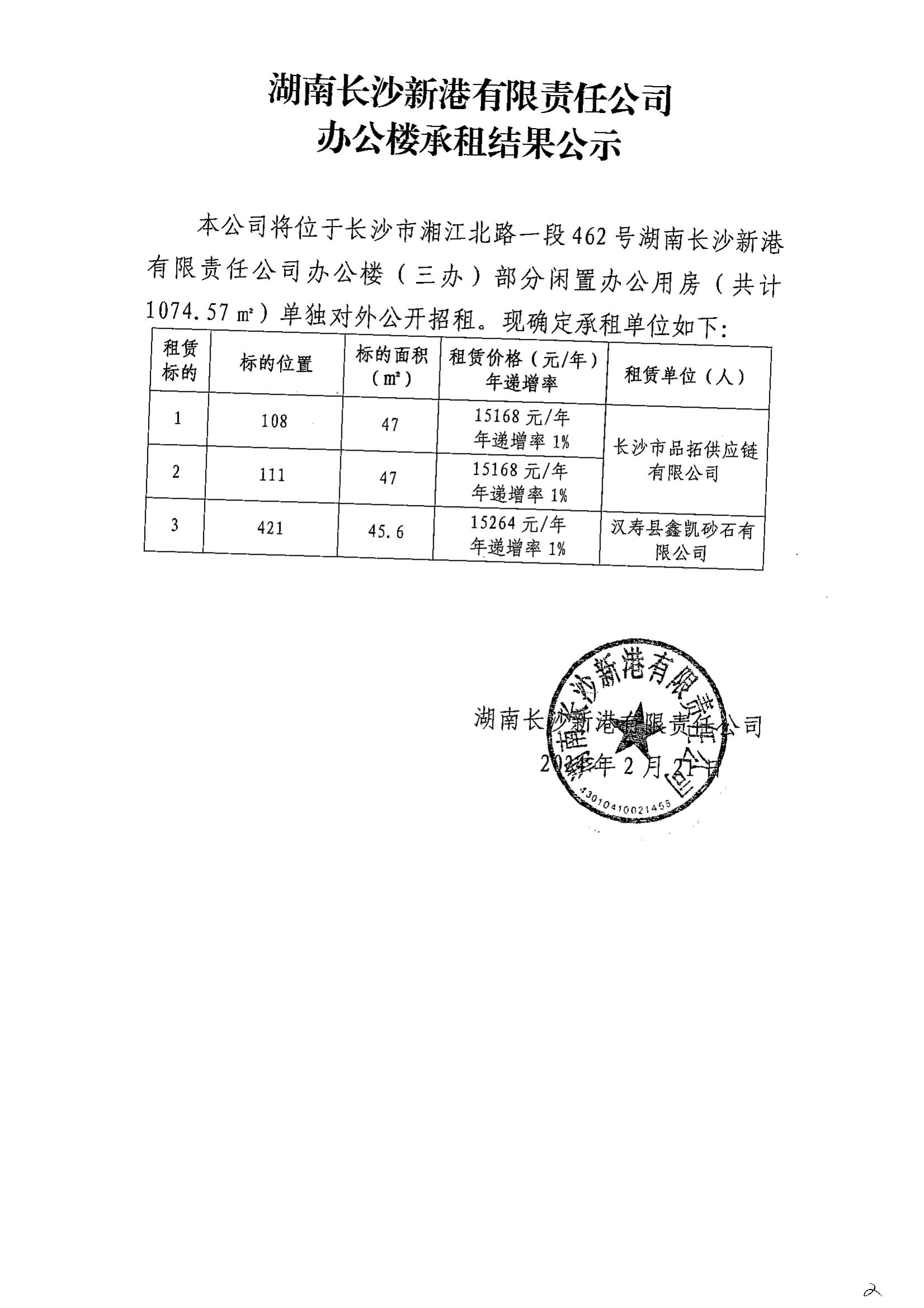 長(cháng)沙新港辦公樓承租結果公示(108/111/421)