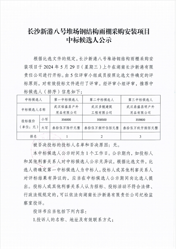 長(cháng)沙新港八號堆場(chǎng)鋼結構雨棚采購安裝項目中標候選人公示