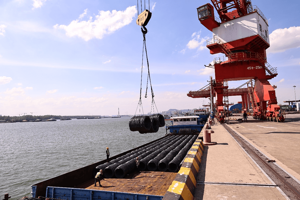 2022年4月7日,長(cháng)沙新港首迎萬(wàn)噸級貨輪。